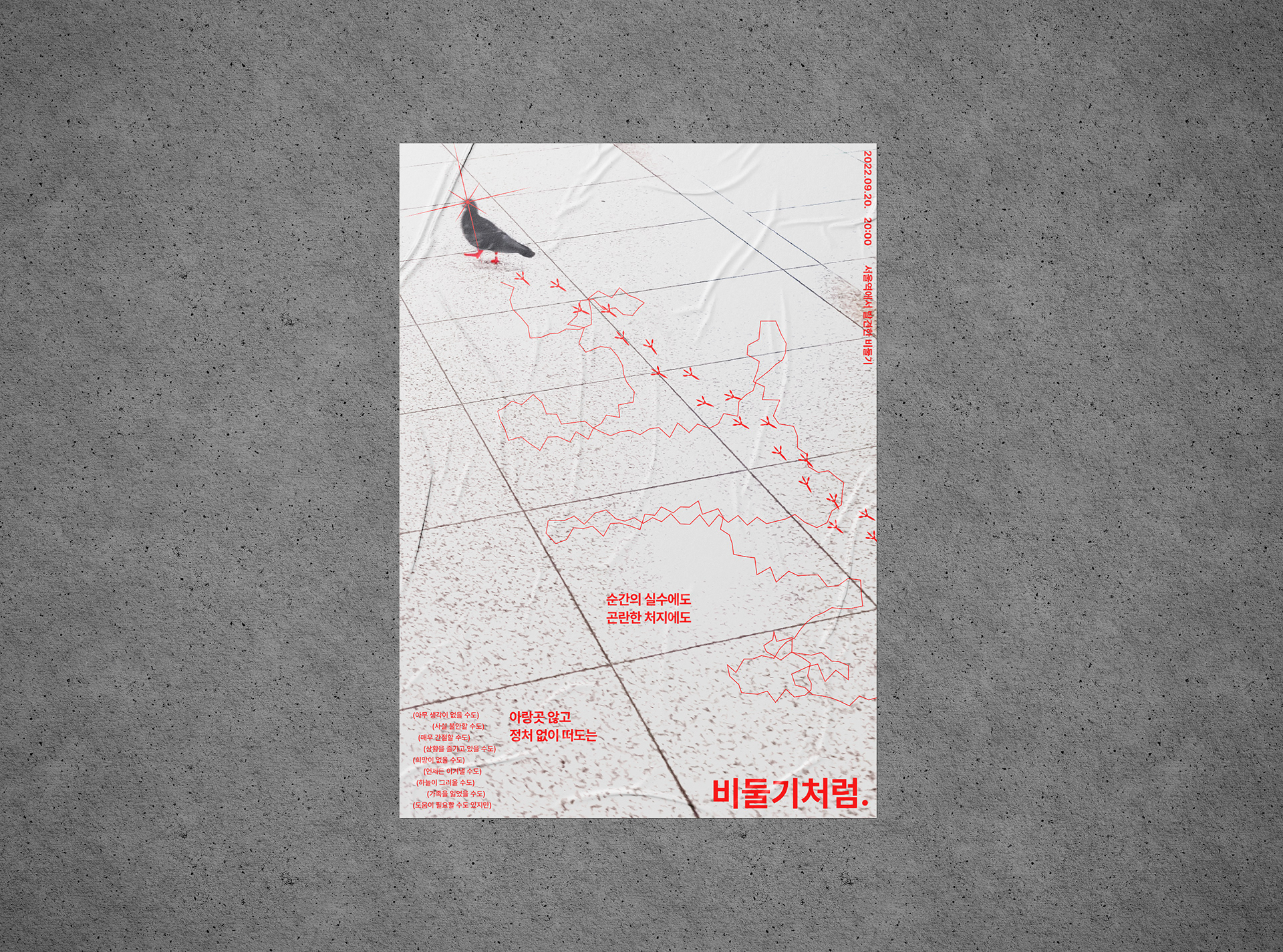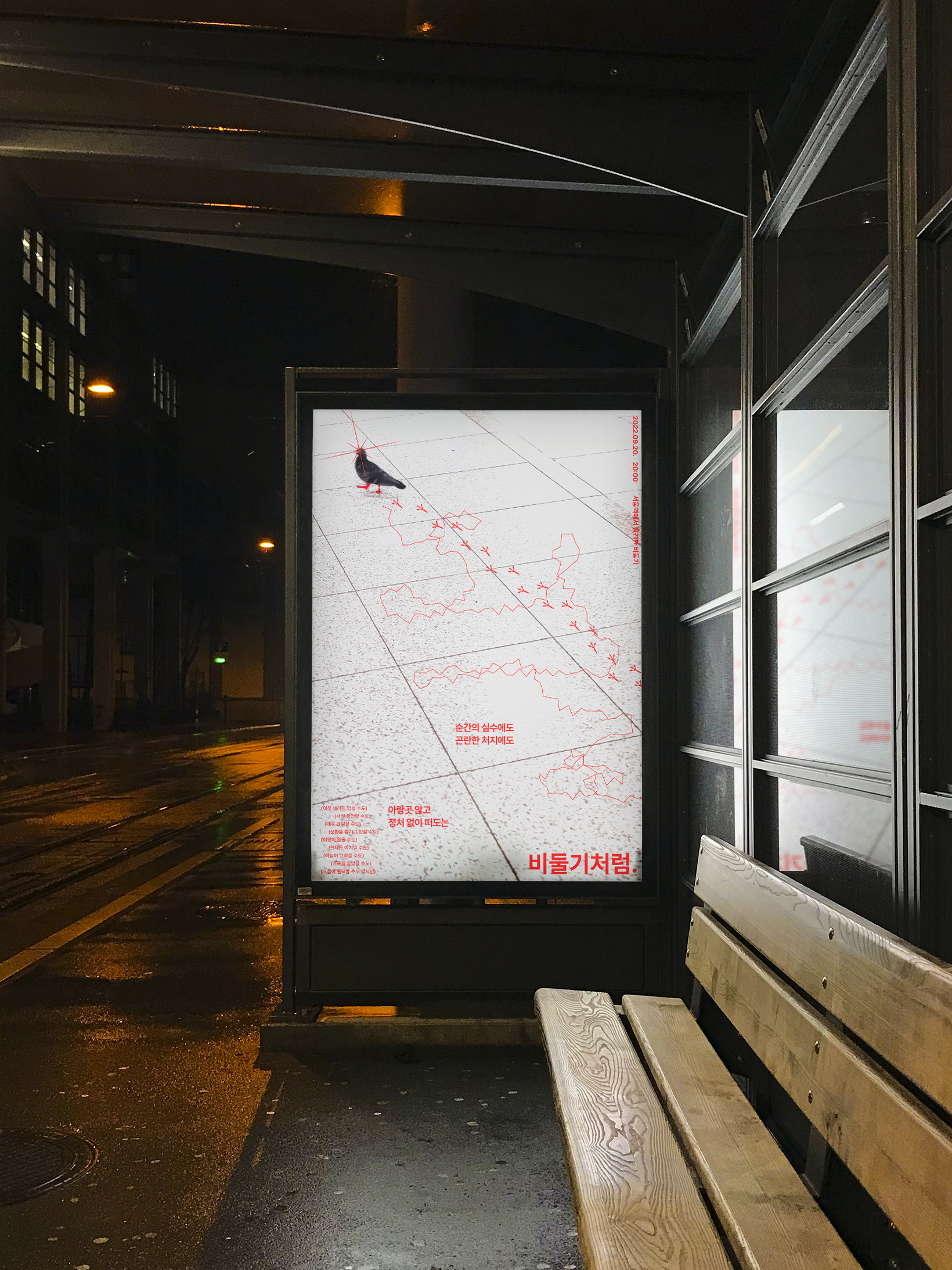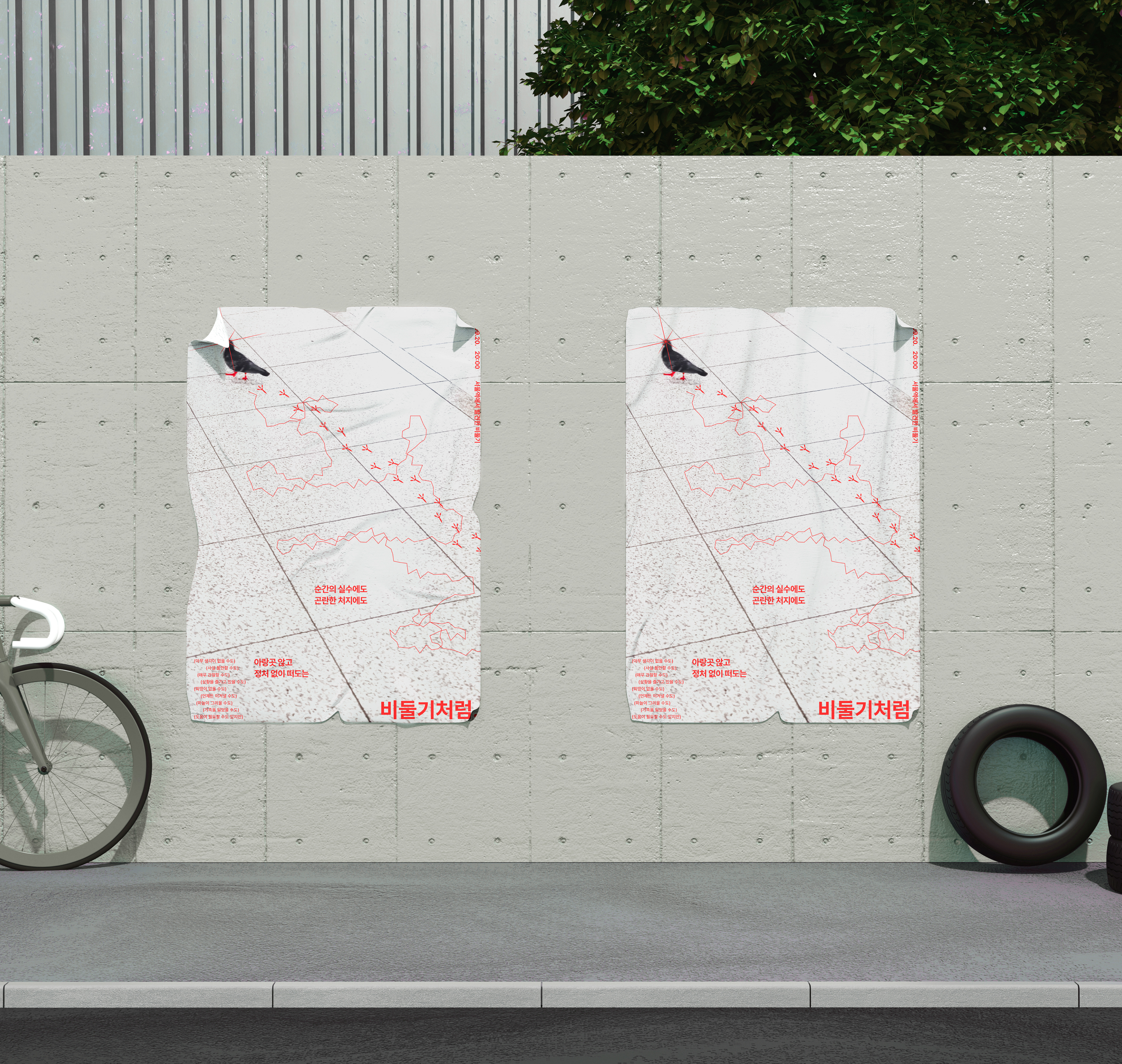 지금 누군가에게는 필요한 모습인 아랑곳 않고 전진하는 비둘기의 모습을 포스터로 연출하여 부각 시켰습니다.